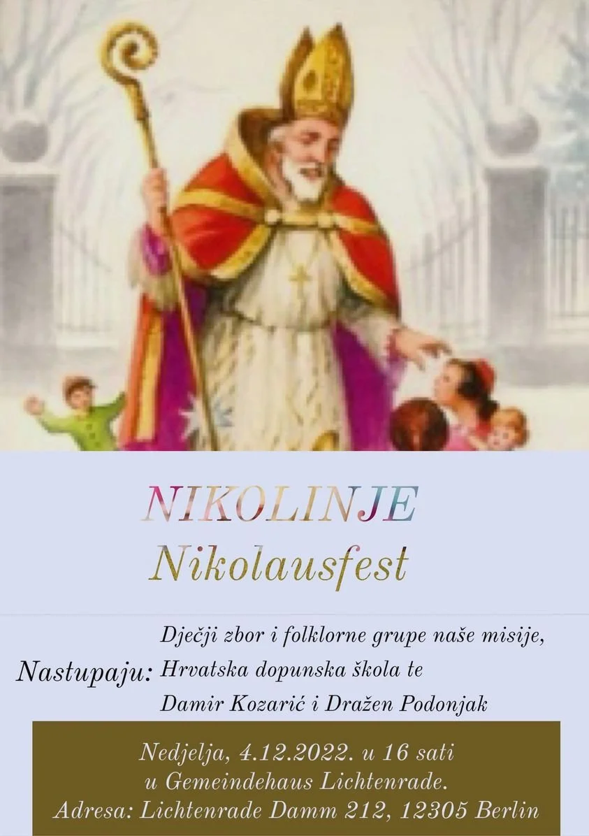 NEDJELJA: 2. nedjelja Došašća/Adventa. Svete mise 9:30 sati (Spandau), 11:30 sati (Wedding) i 13:30 sati (Mehringdamm). Nikolinje u Gemeindehaus Lichtenrade.